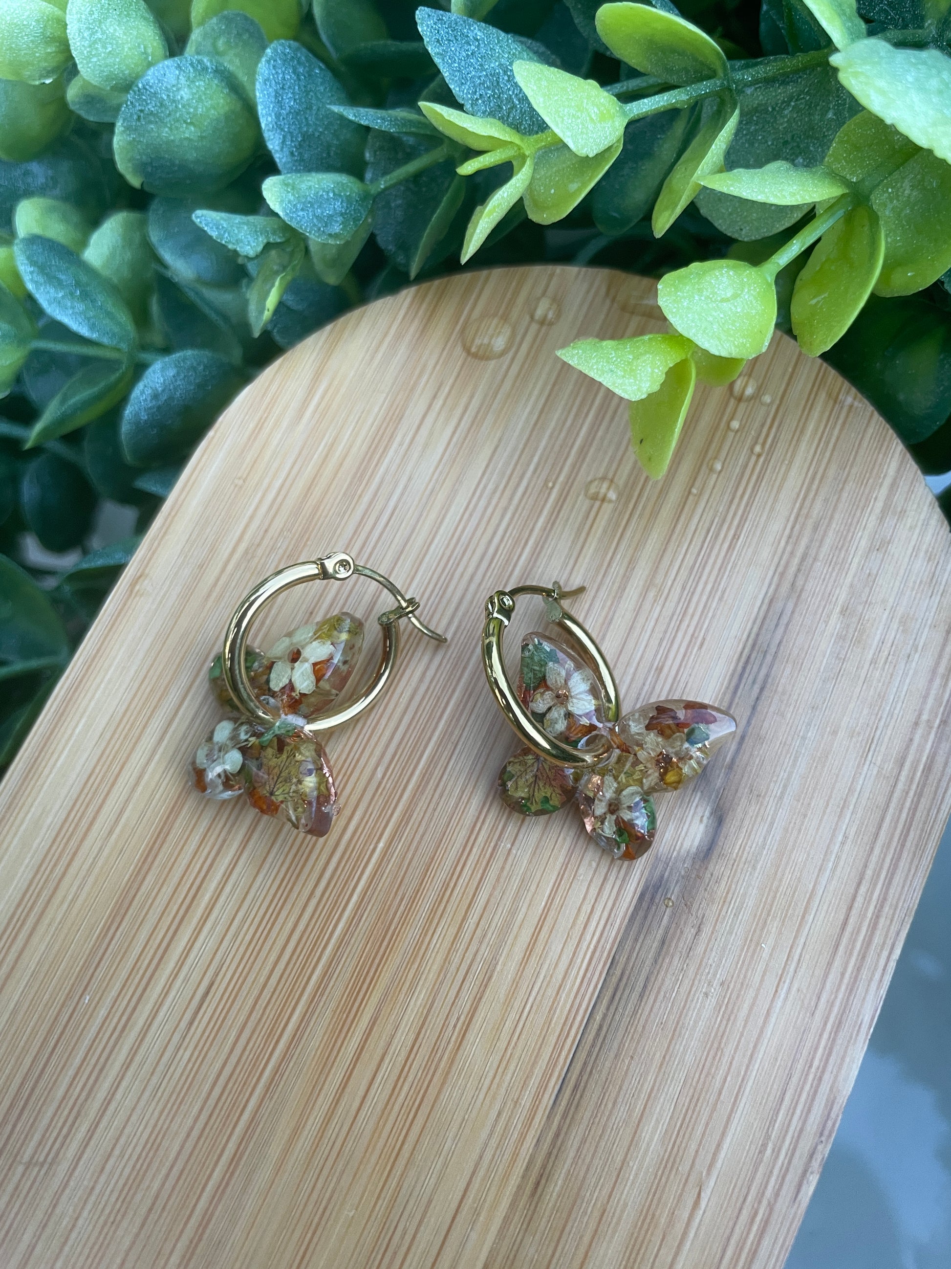 Autumn leaf butterfly hoop earrings