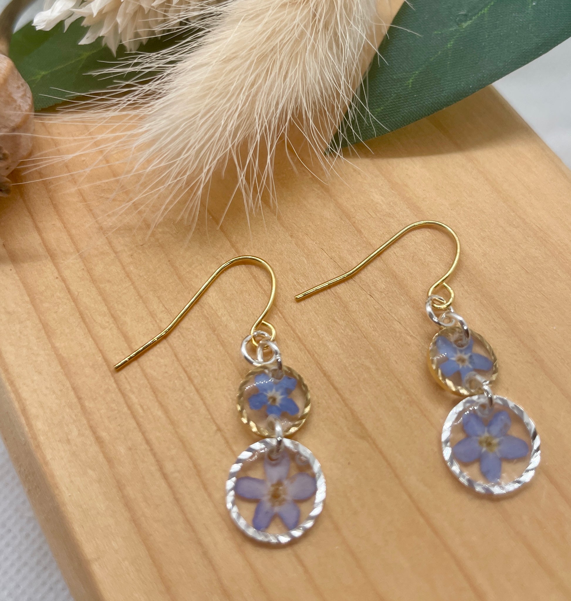 Delicate and timeless, these handmade earrings showcase the natural beauty of real dried flowers, thoughtfully preserved in crystal-clear resin. Every flower is hand picked from either my garden or the Dorset hedgerow, and then pressed in traditional Victorian style flower-presses.