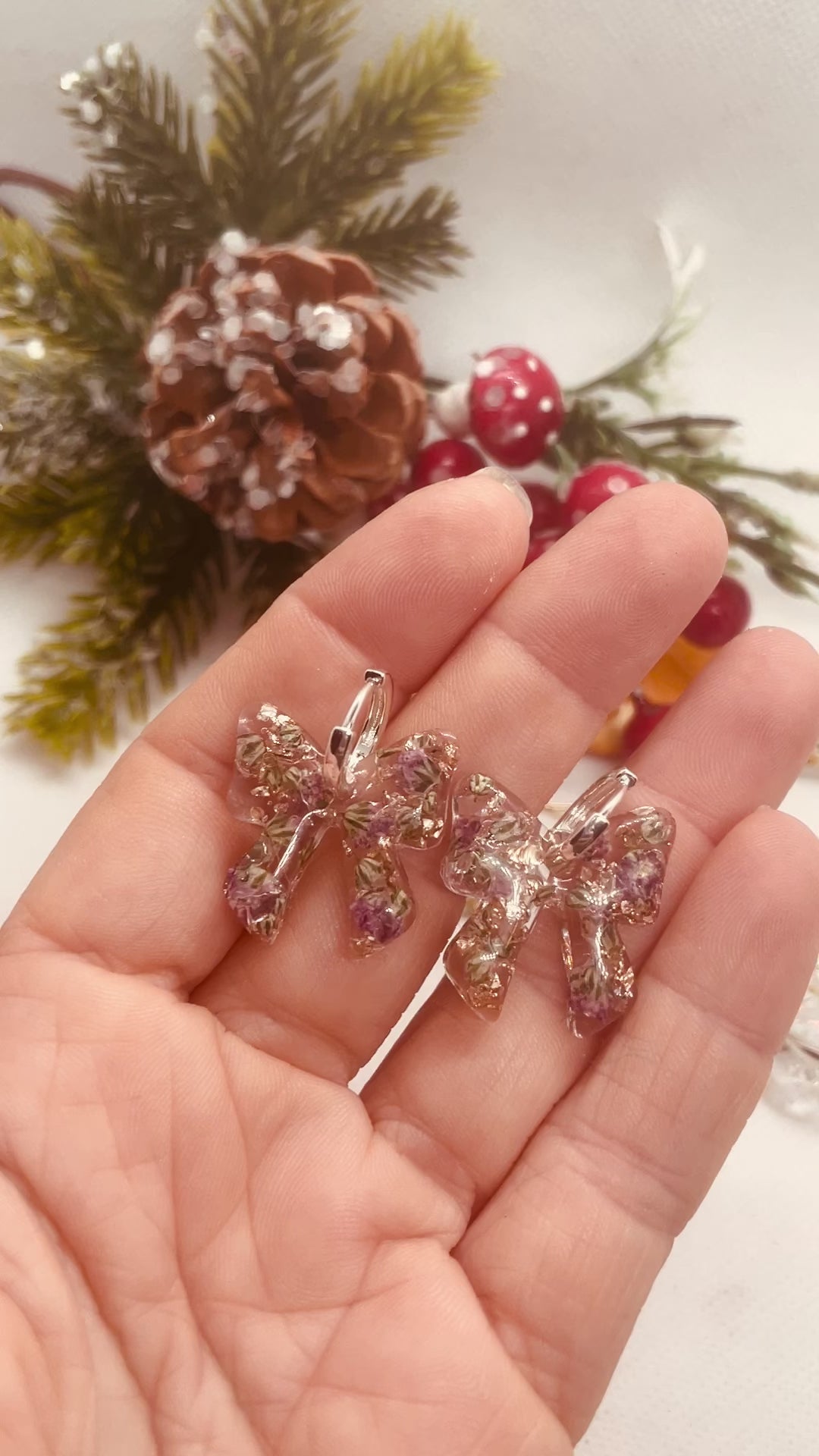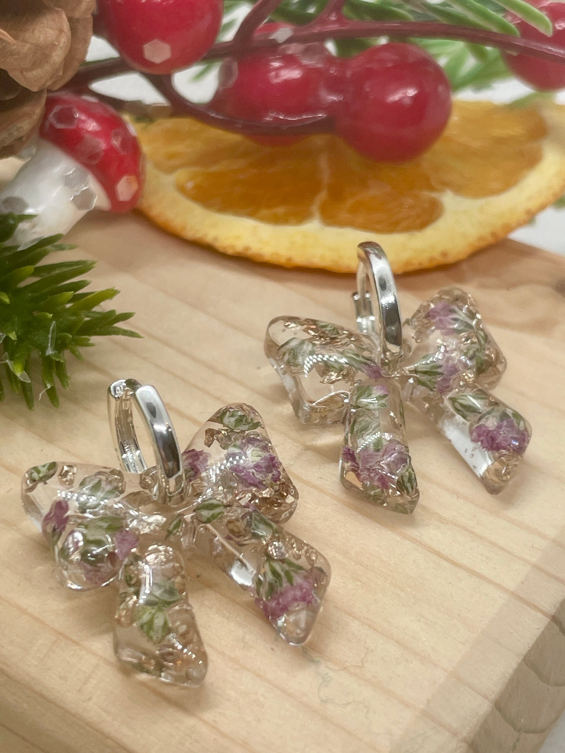Gypsophila bow hoop earrings