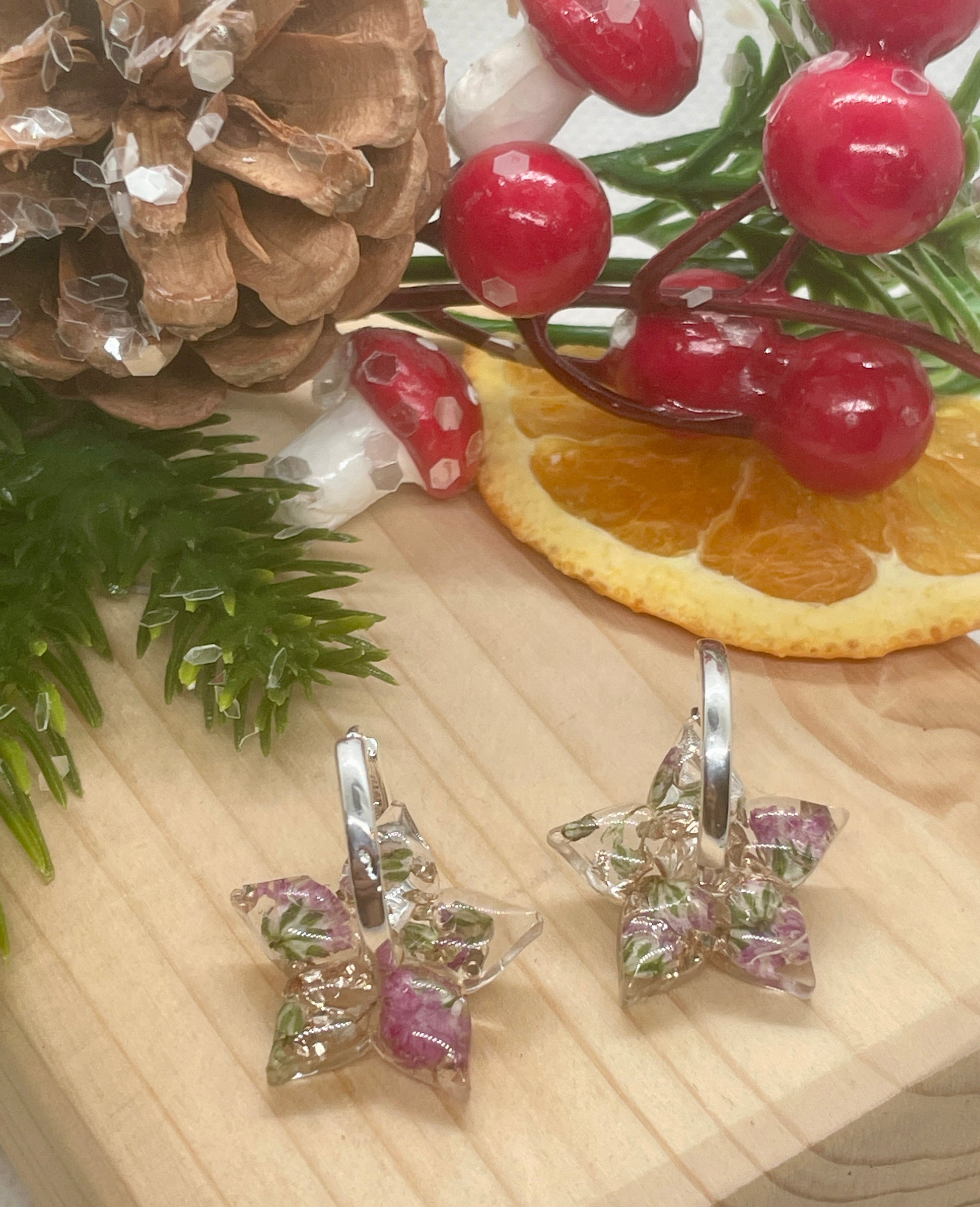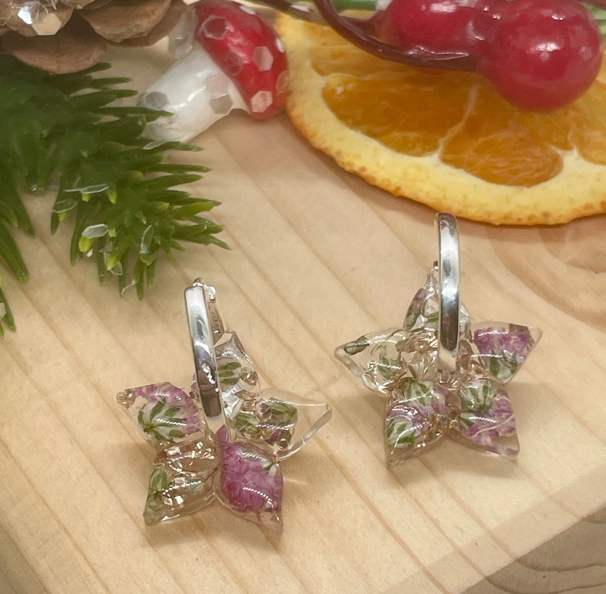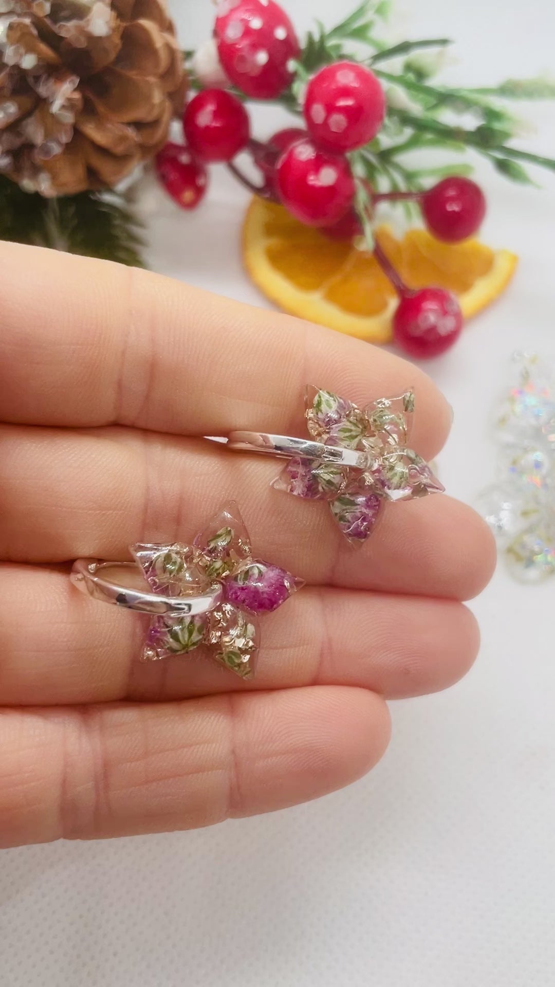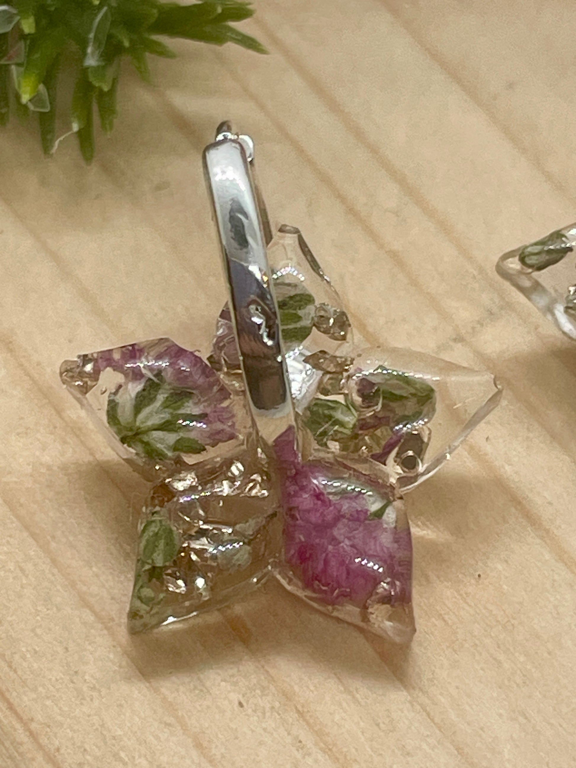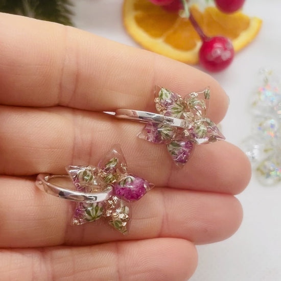 Delicate and timeless, these handmade earrings showcase the natural beauty of real dried flowers, thoughtfully preserved in crystal-clear resin. Every flower is hand picked from either my garden or the Dorset hedgerow, and then pressed in traditional Victorian style flower-presses.