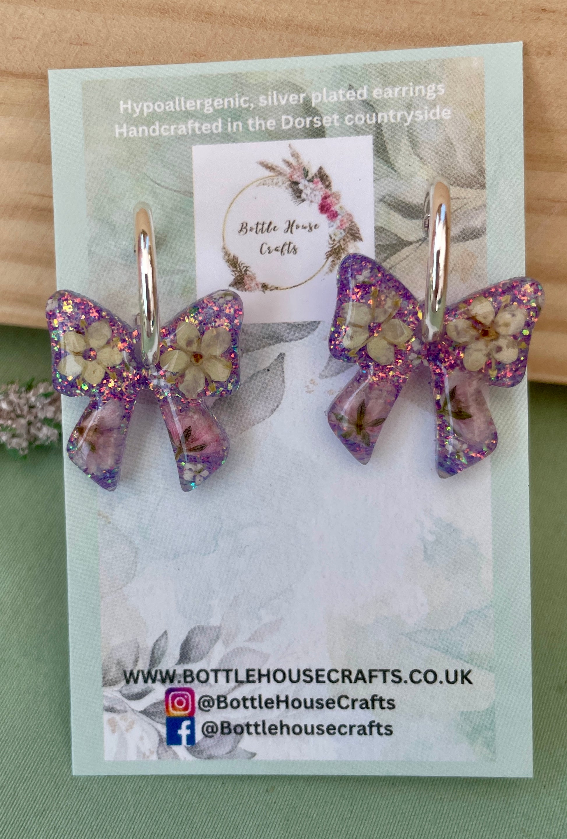 Delicate and timeless, these handmade earrings showcase the natural beauty of real dried flowers, thoughtfully preserved in crystal-clear resin. Every flower is hand picked from either my garden or the Dorset hedgerow, and then pressed in traditional Victorian style flower-presses.