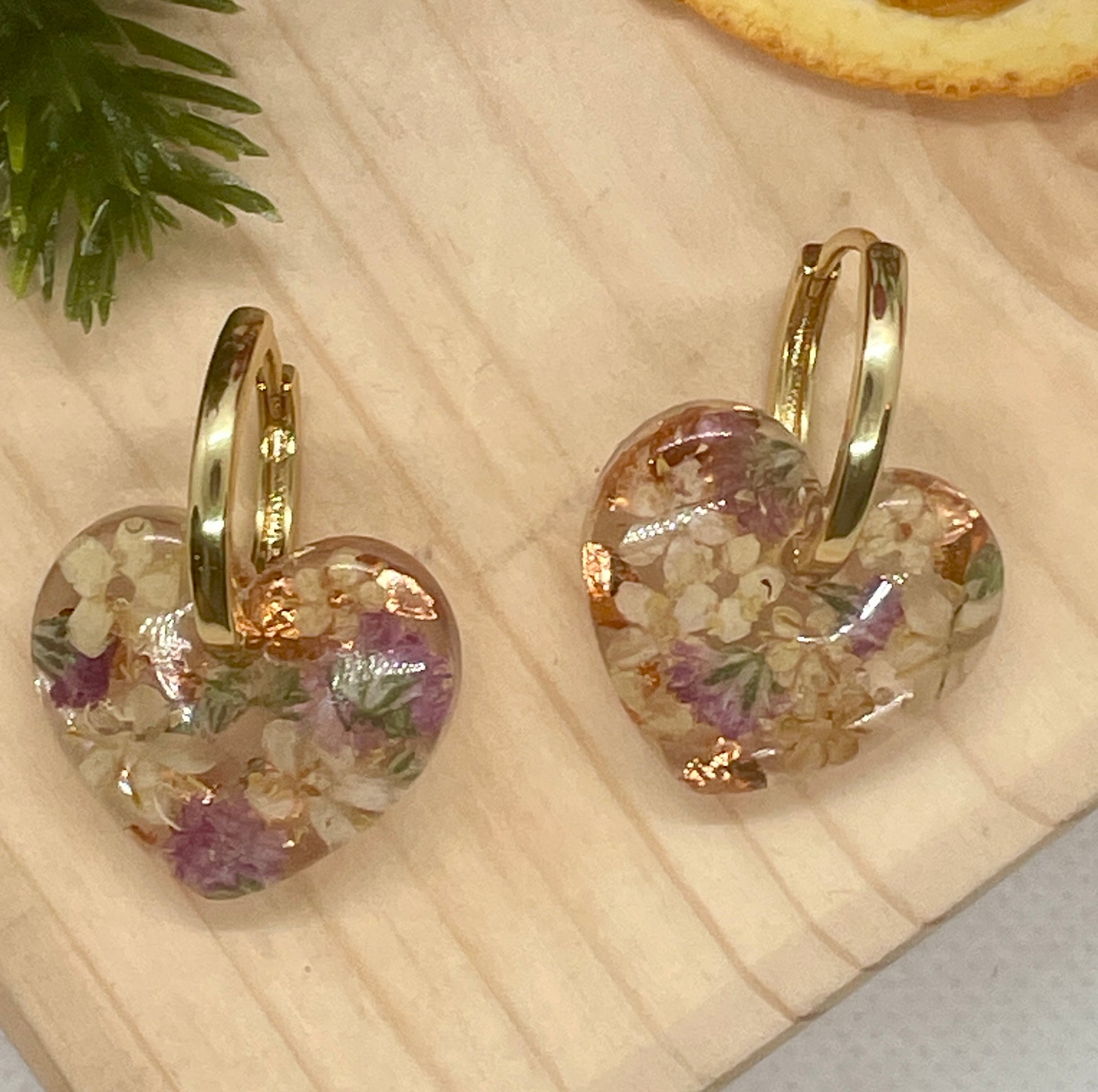 Delicate and timeless, these handmade earrings showcase the natural beauty of real dried flowers, thoughtfully preserved in crystal-clear resin. Every flower is hand picked from either my garden or the Dorset hedgerow, and then pressed in traditional Victorian style flower-presses.