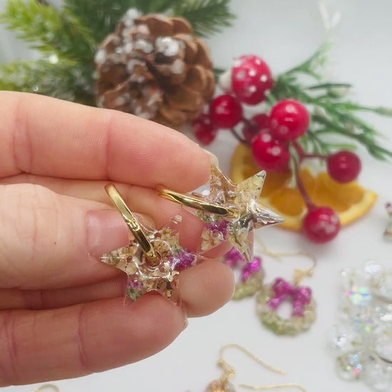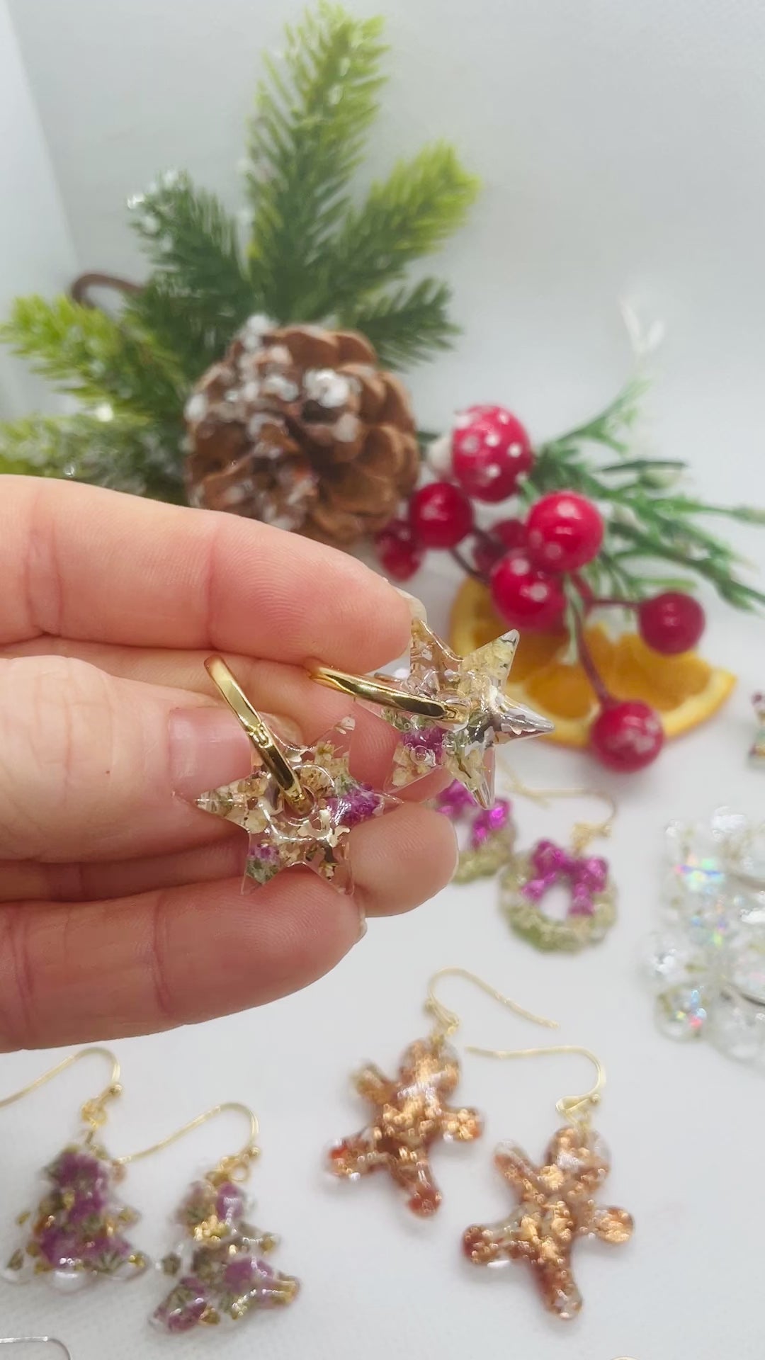 Delicate and timeless, these handmade earrings showcase the natural beauty of real dried flowers, thoughtfully preserved in crystal-clear resin. Every flower is hand picked from either my garden or the Dorset hedgerow, and then pressed in traditional Victorian style flower-presses.