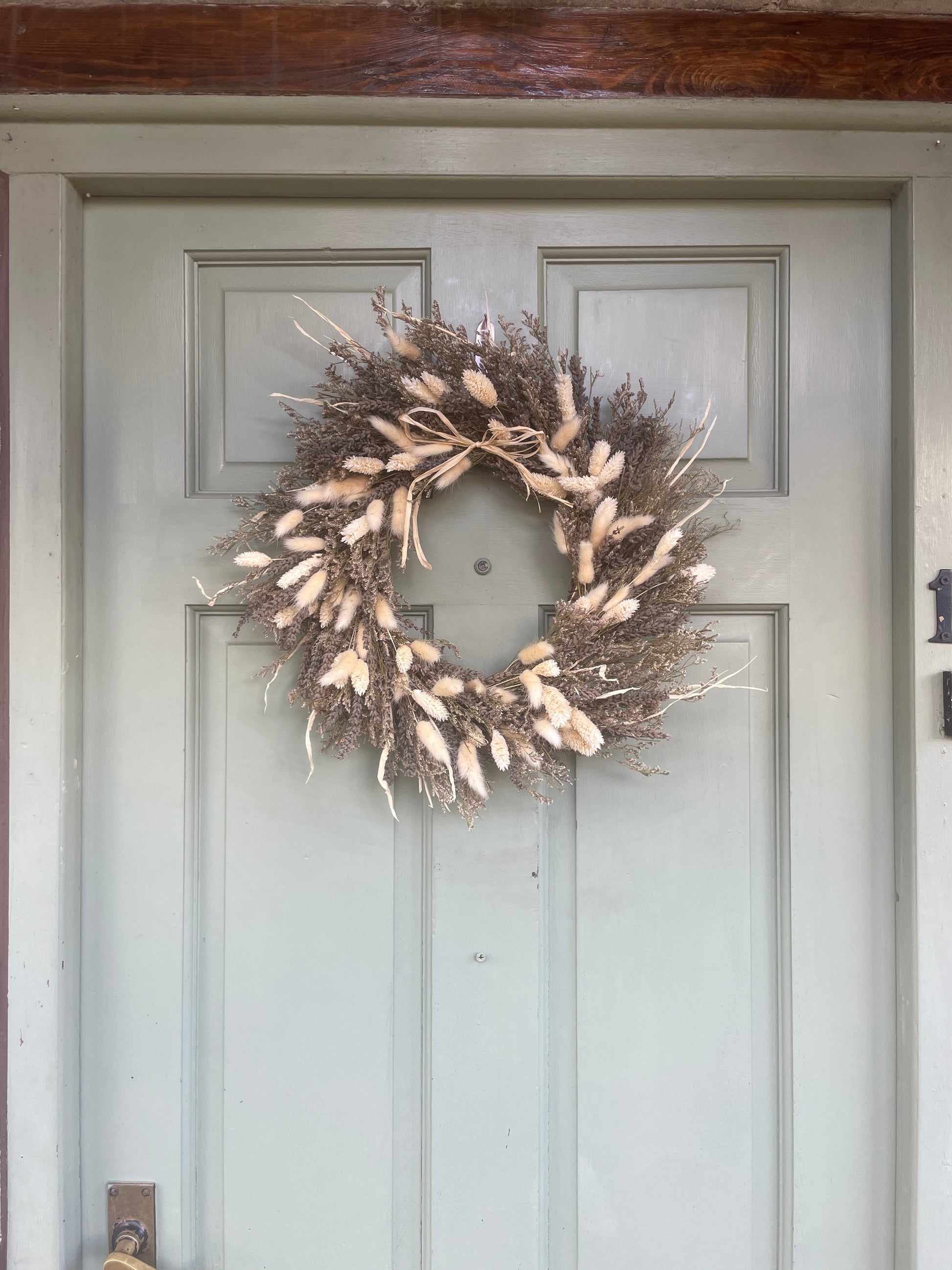 Bring timeless beauty into your home with this handcrafted wreath, lovingly made in the heart of rural Dorset. Blending the delicate charm of dried flowers with the elegance of hand-selected fabric blooms, this one-of-a-kind piece offers a perfect balance of natural textures and lasting durability.