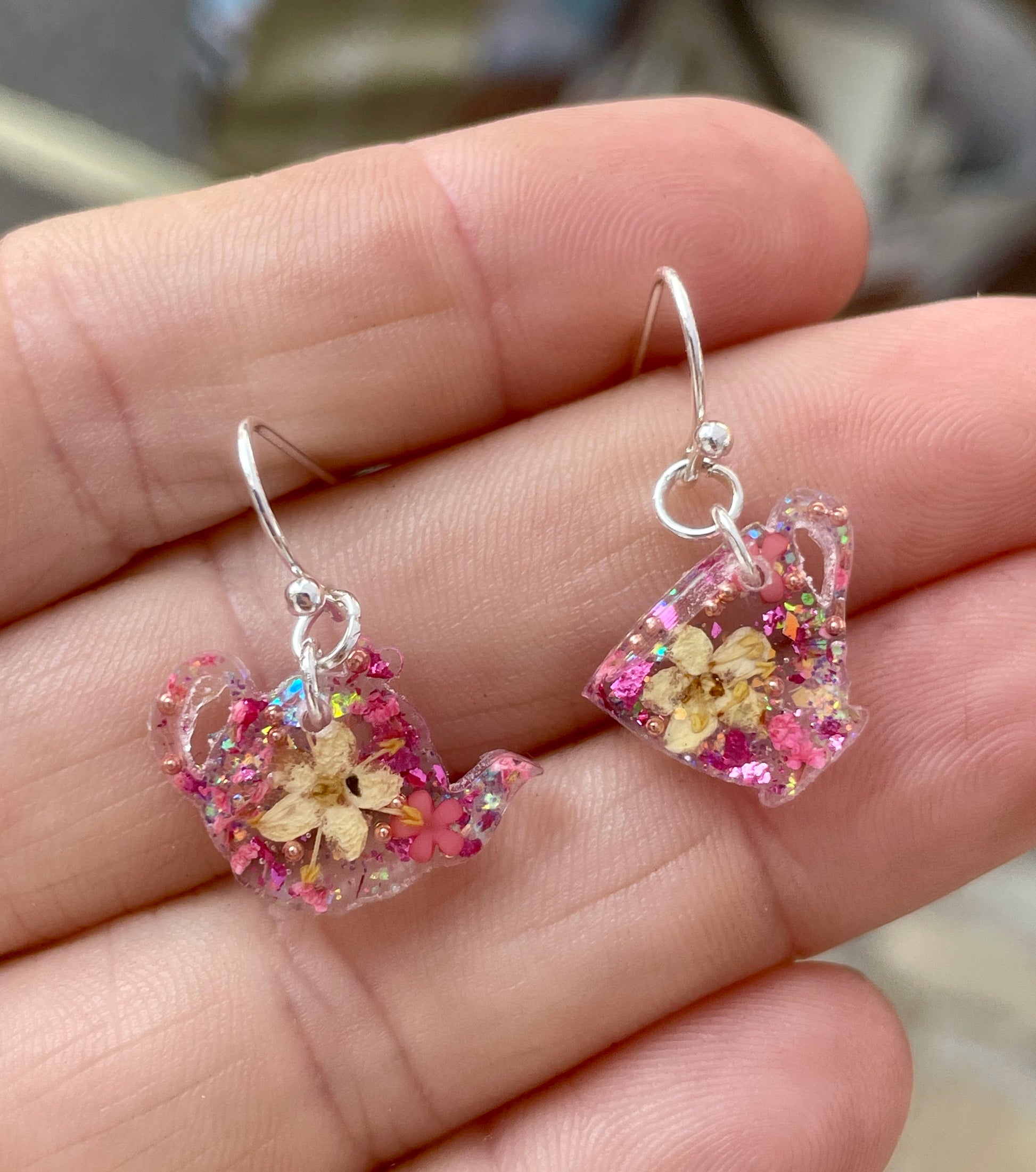 Delicate and timeless, these handmade earrings showcase the natural beauty of real dried flowers, thoughtfully preserved in crystal-clear resin. Every flower is hand picked from either my garden or the Dorset hedgerow, and then pressed in traditional Victorian style flower-presses.