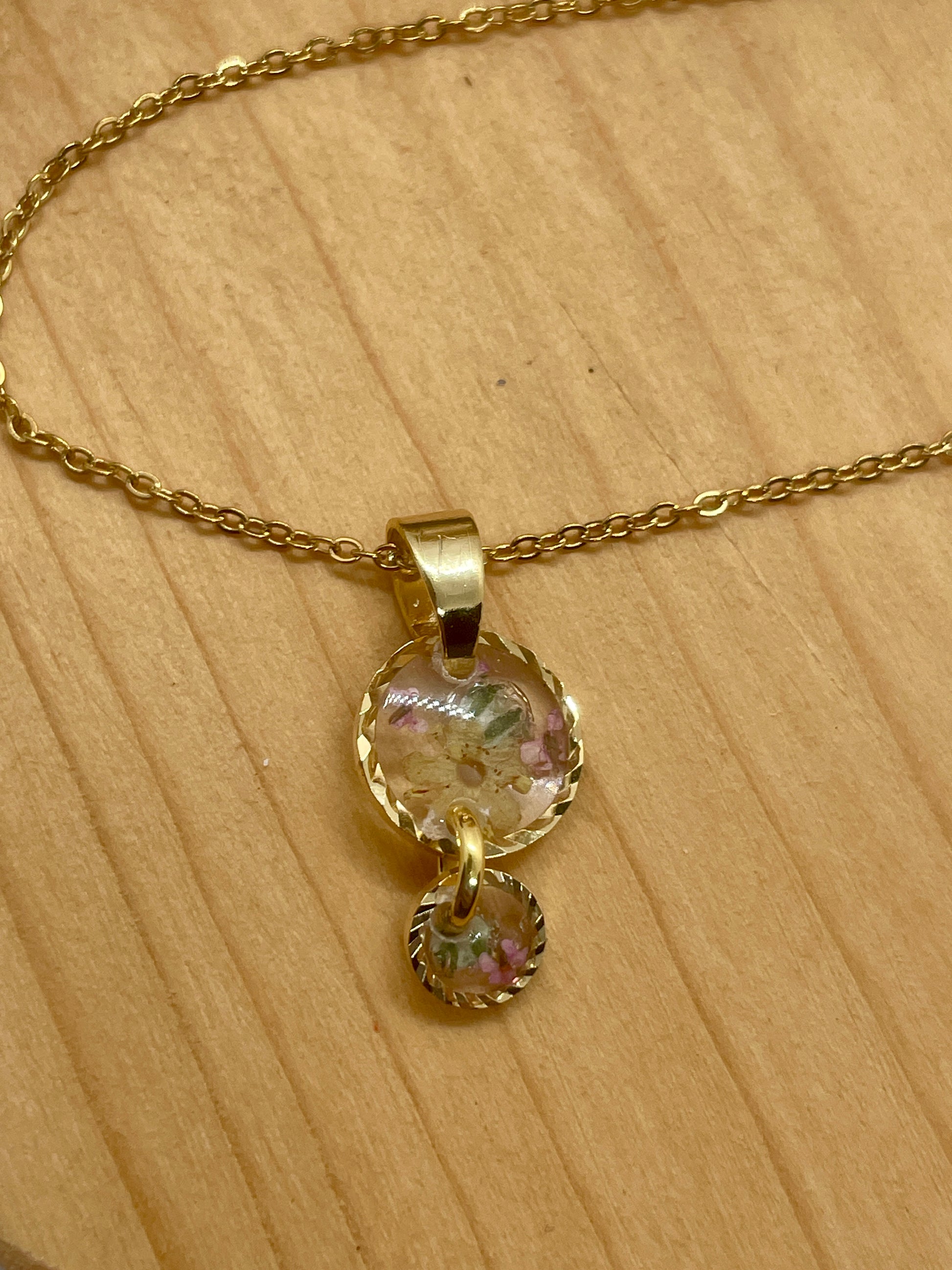 Delicate and timeless, these handmade necklaces showcase the natural beauty of real dried flowers, thoughtfully preserved in crystal-clear resin. Every flower is hand picked from either my garden or the Dorset hedgerow, and then pressed in traditional Victorian style flower-presses.